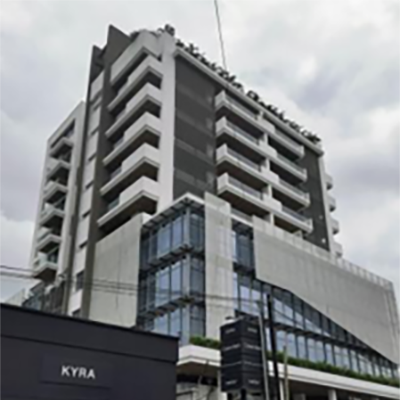 猎户座大厦(Orion Building) 这是一栋多功能综合体楼,为住宅用建筑,包含舞厅、健身房、宴会厅、游泳池、直升机停机坪等附属设施,总建筑面积为17200 平方米,建筑高度为51.5 米,主体结构加玻璃幕墙工程耗资 1465 万美元,历时 15 个月。